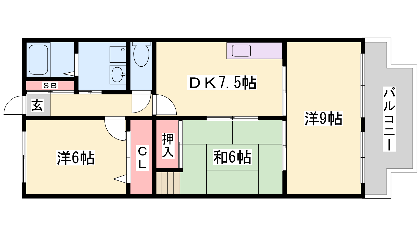 - DK7.5帖、洋室9帖、洋室6帖、和室6帖