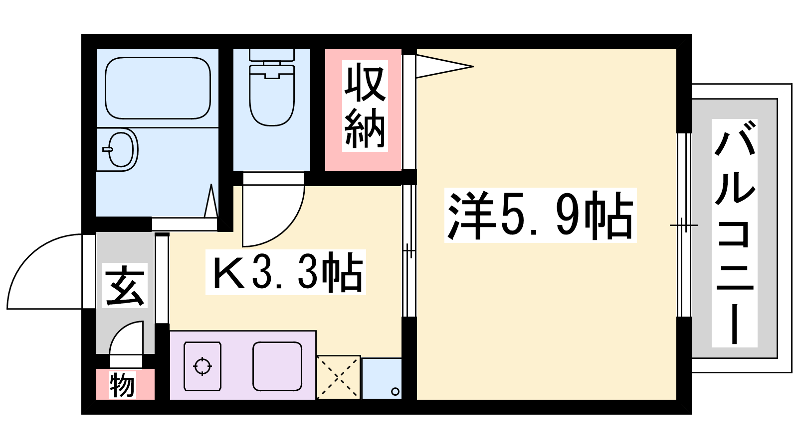 - K3.3帖、洋室5.9帖