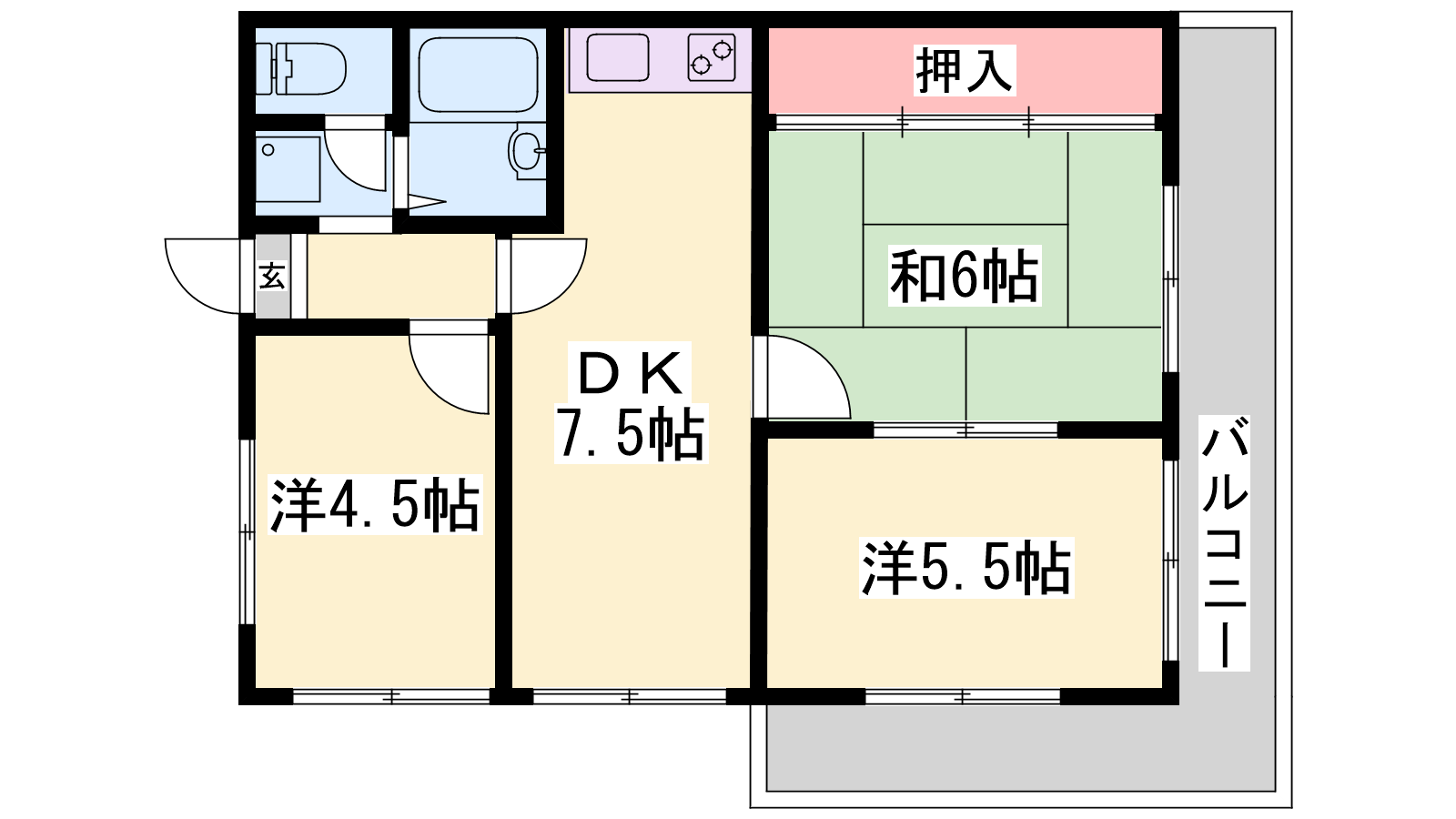 - DK7.5帖、和室6帖、洋室5.5帖、洋室4.5帖