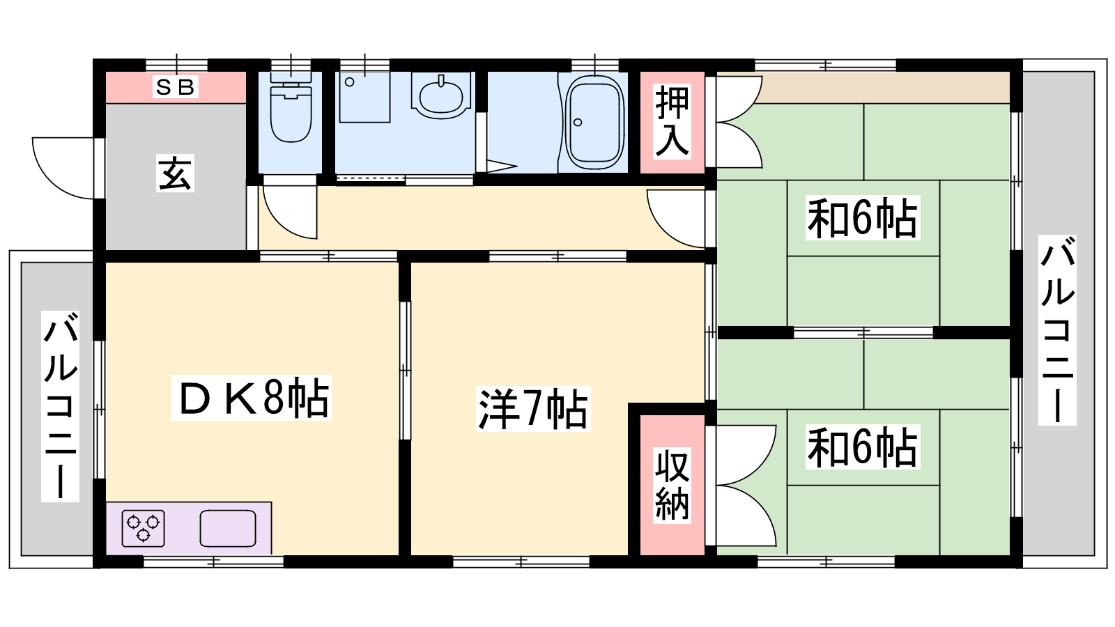 - DK8帖、洋室8帖、洋室7帖、和室6帖