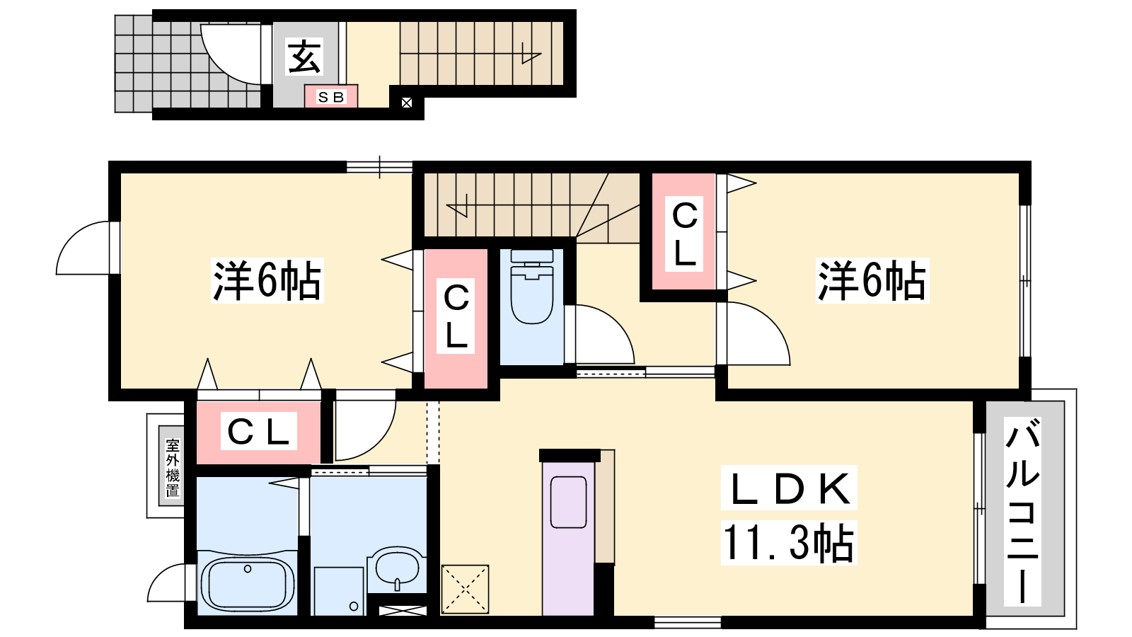 - LDK11.3帖、洋室6帖、洋室6帖
